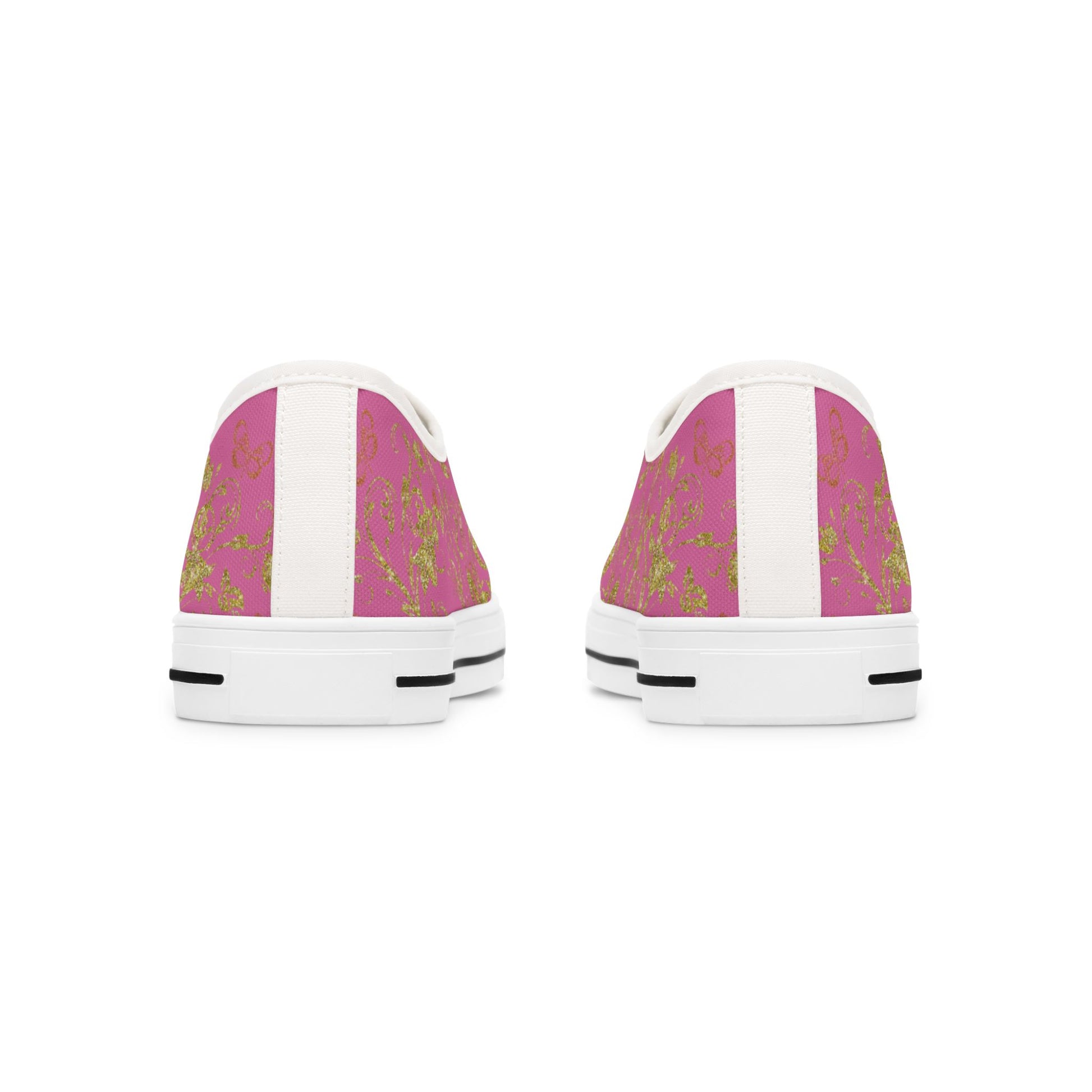 Step into bohemian-inspired beauty with the Womens Bohemian Butterfly Low Top Sneakers, featuring a sleek white sole for a fresh and stylish look. Designed for those who love art, nature, and effortless fashion, these sneakers blend intricate gold-accented butterflies and floral details with lightweight comfort and timeless appeal.